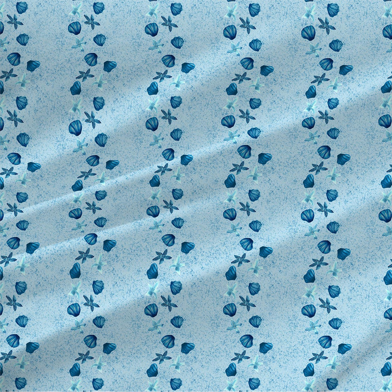 Hand painted seashells and starfish design custom prints by the yard on any fabric you choose! The Textile District's eco-friendly, OEKO-TEX¨ certified process ensures excellent print clarity, vibrant colors, and a soft, colorfast finish that washes and wears beautifully for apparel, quilting, upholstery, and accessories for indoor and outdoor decor! Design from the “Surfside” Collection created by Jasmine Goodwin Designs.
