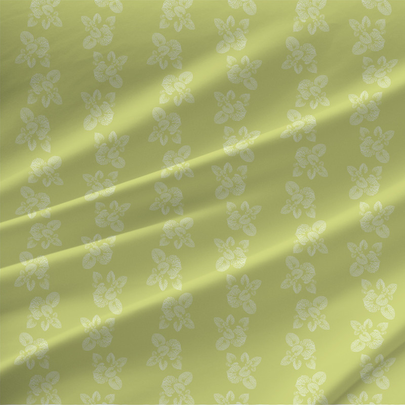 Delicate Brunnera leaves floral design custom prints by the yard on any base fabric you choose! Our extensive range of high-quality fabrics are perfect for apparel, home decor, quilting and crafts, upholstery, and furniture renovation! Colorway images represent 27" of printed fabric. All print on demand and ship FOB NC. Design from the “Weslia Garden” Collection created by Emily Ennulat-Lustine, Ennulat Designs.