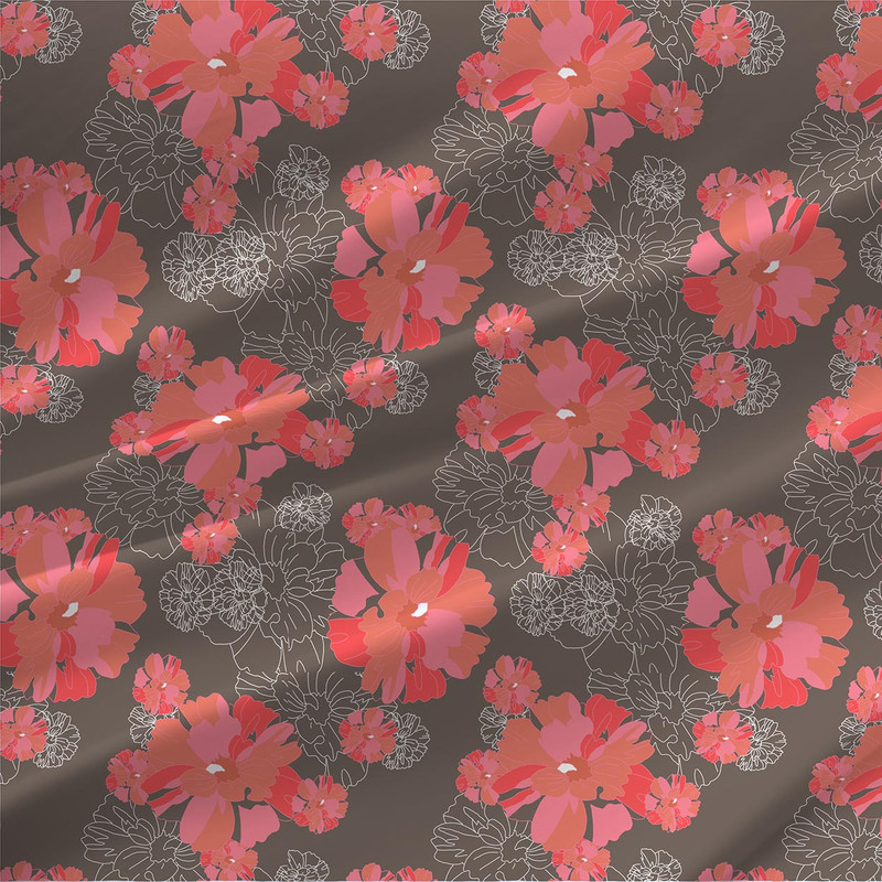 Bold abstract floral design custom prints by the yard on any base fabric you choose! Our extensive range of high-quality fabrics are perfect for apparel, home decor, quilting and crafts, upholstery, and furniture renovation! Colorway images represent 27" of printed fabric. All print on demand and ship FOB NC. Design from the “Authenticity” Collection created by J Luna Design.
