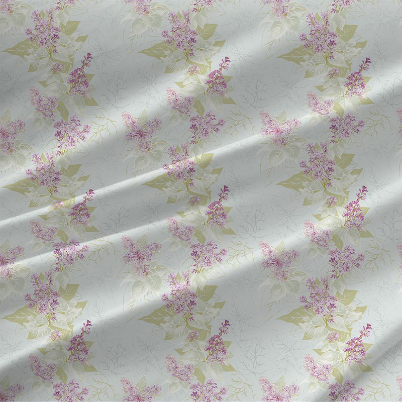 Elegant lilacs floral design custom prints by the yard on any base fabric you choose! Our extensive range of high-quality fabrics are perfect for apparel, home decor, quilting and crafts, upholstery, and furniture renovation! Colorway images represent 27" of printed fabric. All print on demand and ship FOB NC. Design from the “Helen's Joy” Collection created by Emily Ennulat-Lustine, Ennulat Designs.