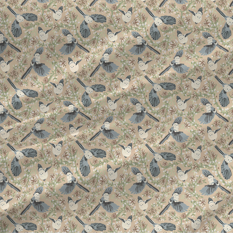 Shima-enaga birds in flight is an abstract floral design that is available in warm seasonal shades perfect for nursery decor to apparel! Colorway images represent 27" of printed fabric. All print on demand and ship FOB NC.