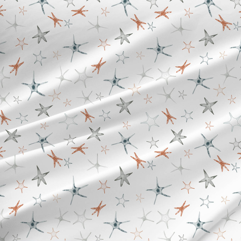 Ocean-inspired Starfish fabric in soft, coastal hues for a fresh, beach vibe. This abstract nautical themed pattern adds subtle movement and warmth to any project—perfect for coastal quilts, handmade apparel, textured pillows, or natural-toned home décor.
