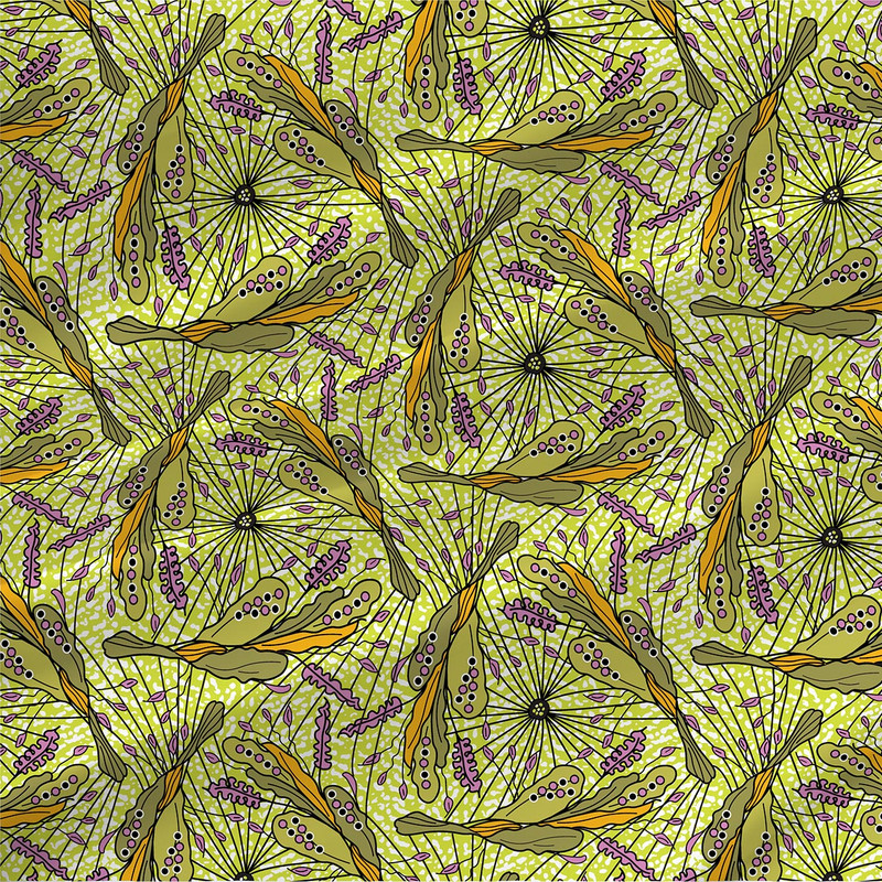 - Lavender Green: Olive, gold, and pink-lavender on bright green for bold apparel, bags, quilts, and playful home decor.
