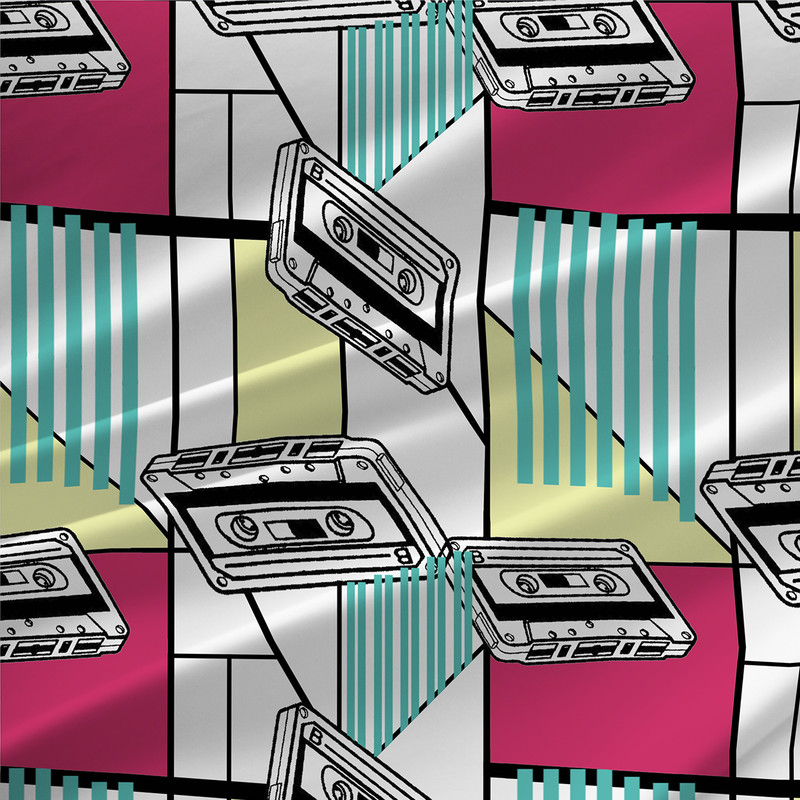 Whimsical 80's music inspired novelty design custom prints by the yard on any base fabric you choose! Our extensive range of high-quality fabrics are perfect for apparel, home decor, quilting and crafts, upholstery, and furniture renovation! Colorway images represent 27" of printed fabric. All print on demand and ship FOB NC. Design from the The Textile District.